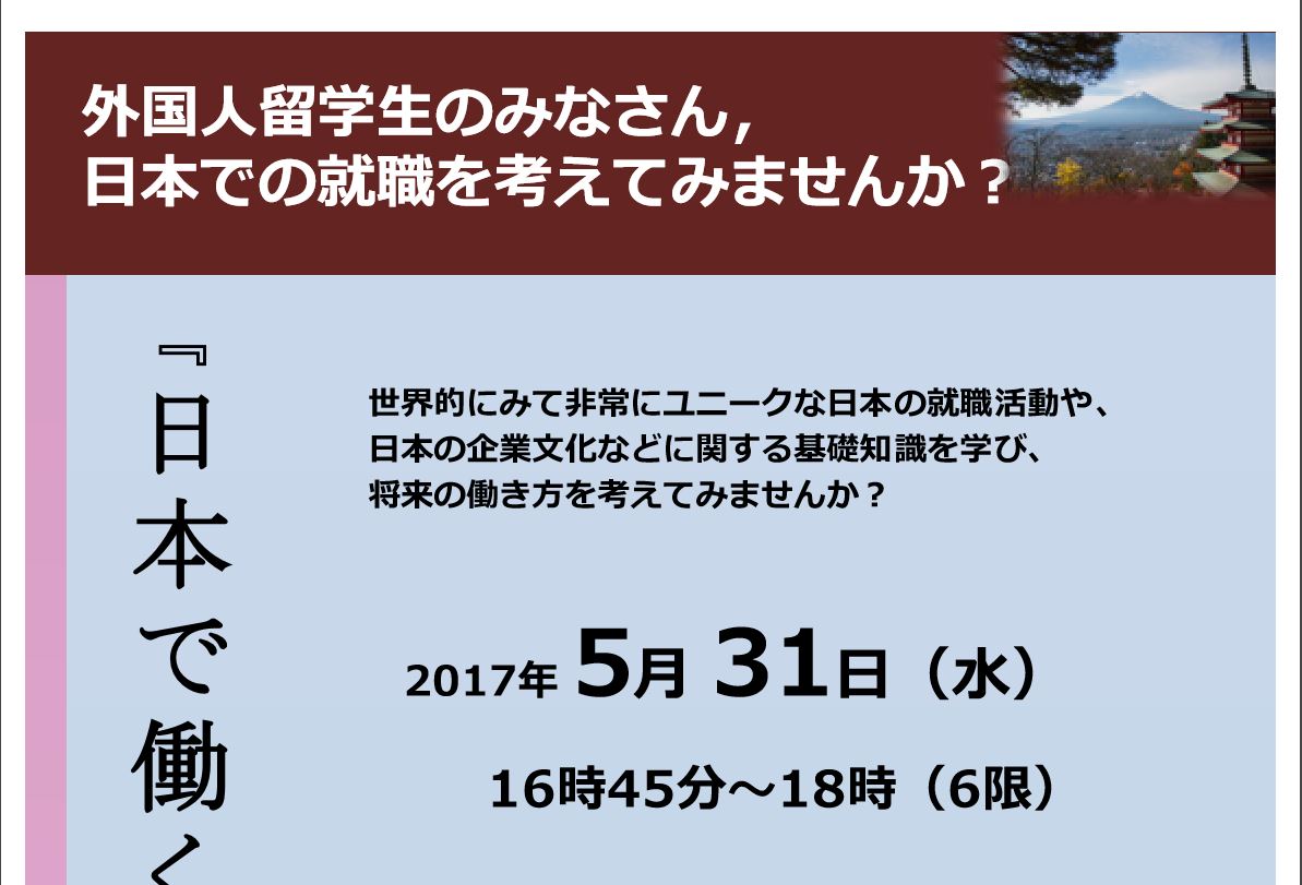 日本で就職したい留学生向けの講演会に関するご案内です。