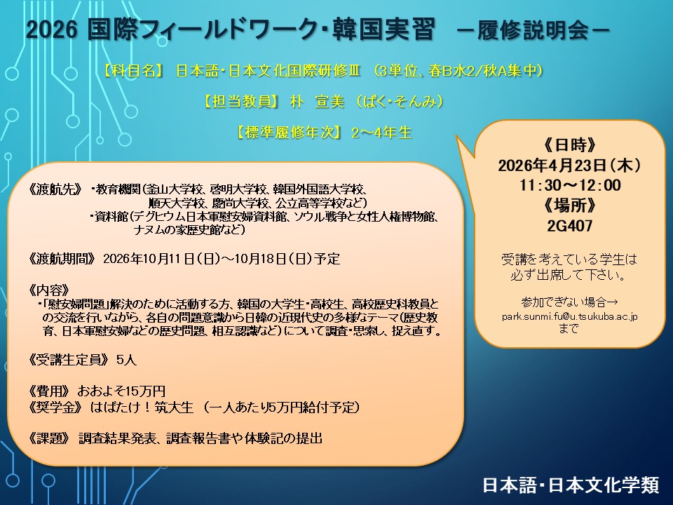 【履修説明会】2026 国際フィールドワーク・韓国実習